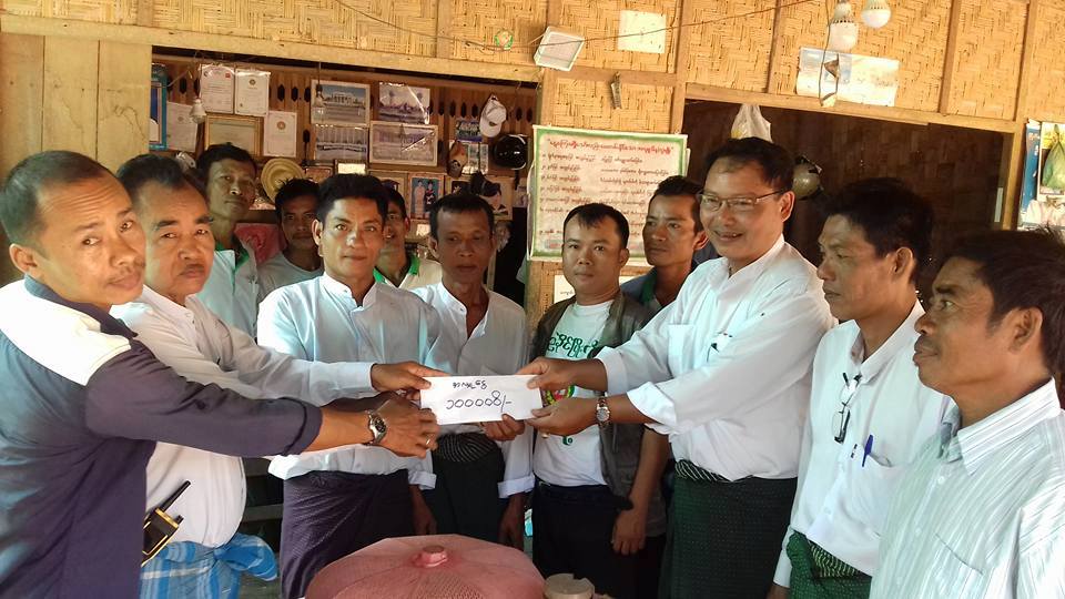 ၿမိတ္ၿမိဳ႕နယ္ျပည္ခိုင္ၿဖိဳးပါတီက စလြန္း-မင္းသန္း ေက်းရြာခ်င္းဆက္ တံတားေဆာက္လုပ္ႏိုင္ေရးအတြက္ ေငြက်ပ္(၁)သိန္း ထည့္ဝင္လႉဒါန္း