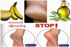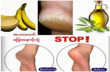 ၃။ ပ်ားရည္ တစ္ခြက္ကို ေရတစ္ပံုးႏွင့္ ေရာပါ။ ေျခေထာက္ကို ၁၅ မိနစ္မွ မိနစ္ ၂၀ ခန္႔စိမ္၍ တိုက္ခြ်တ္ေပးပါ။ တစ္ပတ္တစ္ခါ လုပ္ႏိုင္ပါသည္။ အထက္ပါနည္း ၃ မ်ိဳးထဲမွ မိမိနွင့္ အဆင္ေျပ သည့္နည္းကို ေရြးခ်ယ္လုပ္ေဆာင္ႏိုင္ပါသည္။