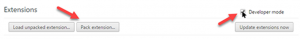 Extension ကို Export လုပ္ေတာ့မွာ ျဖစ္တဲ့အတြက္ Settings > Extension မွာ export ျပဳလုပ္ခ်င္တဲ့ extension ကို အမွန္ျခစ္ထည့္သြင္းၿပီး select ျပဳလုပ္လိုက္ပါ။ Developer Mode ကိုလည္း အမွန္ျခစ္ထည့္ ထားရပါမယ္။ ၿပီးသြားရင္ Pack Extension ဆိုတာကို ႏွိပ္လိုက္ပါ။