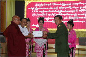 ‘‘ကာကြယ္ေရးဦးစီးခ်ဳပ္တို႔ အလွဴလက္ခံတဲ့ေနရာမွာ သြား လွဴခဲ့တယ္။ ရည္ရြယ္ခ်က္က သုံးခုရွိတယ္။ အၾကမ္းဖက္ဘဂၤါလီေတြ သတ္လို႔ေသသြားတဲ့ ႏုိင္ငံ့၀န္ထမ္းေတြ၊ အၾကမ္းဖက္သမားေတြေၾကာင့္ ဒုကၡ ေရာက္ေနတဲ့ သူေတြနဲ႔၊ တာ၀န္ထမ္းေဆာင္ေန တဲ့ တပ္မေတာ္သားေတြနဲ႔ ရဲတပ္ ဖဲြ႕၀င္ေတြအတြက္ လွဴခဲ့တာပါ’’ ဟု ဆရာေတာ္ဦးေသာပါကက မိန္႔ၾကားသည္။