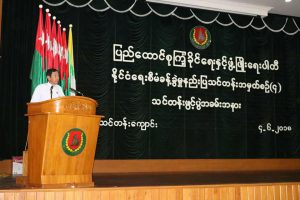 ျပည္ေထာင္စုႀကံ့ခိုင္ေရးႏွင့္ဖြံ႔ၿဖိဳးေရးပါတီ ႏိုင္ငံေရးစီမံခန္႔ခြဲမႈနည္းျပသင္တန္းအမွတ္စဥ္ (၄) သင္တန္းဖြင့္ပြဲ အခမ္းအနားသို႔ ပါတီဥကၠ႒ ဦးသန္းေဌး တက္ေရာက္အမွာစကားေျပာၾကား