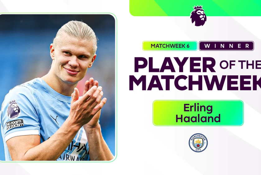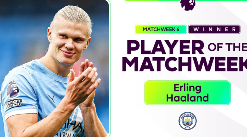 မန်စီးတီးအသင်းရဲ့ တိုက်စစ်မှူး ဟာလန်းဟာ ပြီးခဲ့တဲ့ ပရီးမီးယားလိဂ်ပွဲစဉ်(၆)ရဲ့ အကောင်းဆုံးကစားသမားအဖြစ် ရွေးချယ်ခံခဲ့ရကြောင်း သိရပါတယ်။