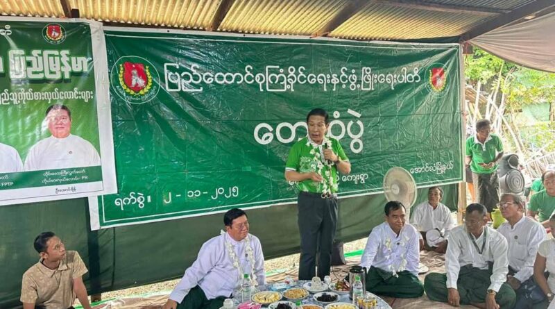 ေအာင္လံမဲဆႏၵနယ္ ျပည္သူ႕လႊတ္ေတာ္ကိုယ္စားလွယ္ေလာင္း ဗဟိုတြဲဘက္အေထြေထြ အတြင္းေရးမႉး ဦးတင္ေအာင္ခ်စ္ ျပလို႔အေျခစိုက္ ေက်ာက္ဆည္ေက်း႐ြာ ျပည္သူမ်ားႏွင့္ေတြ႕ဆုံ
