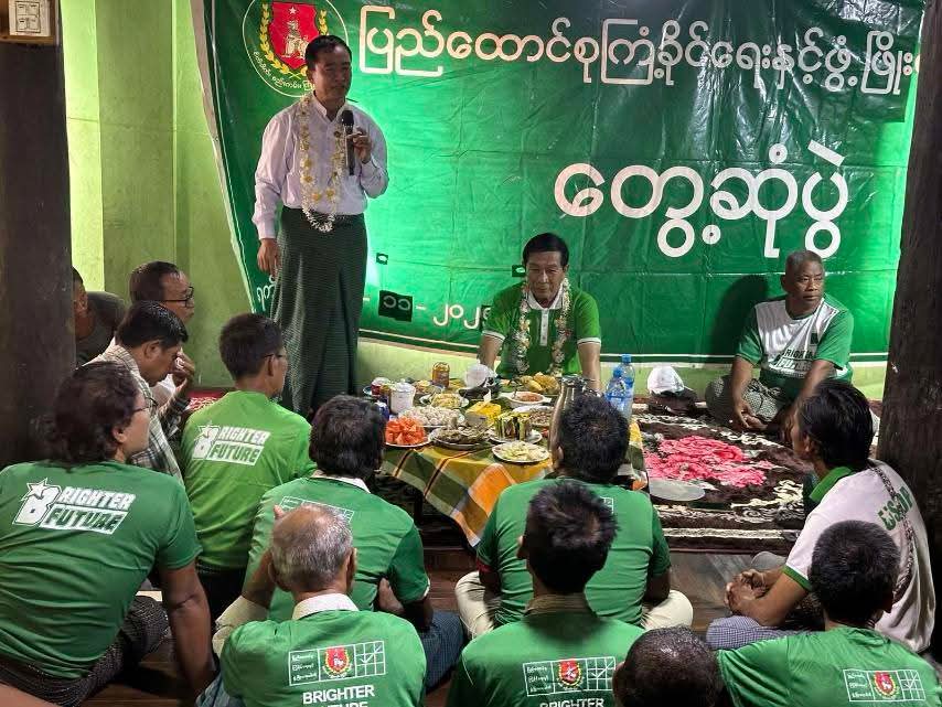 မကွေးတိုင်းဒေသကြီး၊ အောင်လံခရိုင်၊ အောင်လံမြို့နယ်၊ ပြလို့အခြေစိုက်၊ တောင်နံ့သာ ကျေးရွာအုပ်စု၊ မြစ်နာကျေးရွာတွင် ပြည်သူများနဲ့တွေ့ဆုံပြီး မဲပေးပုံနည်းစနစ်များနှင့် ပါတီ၏ ရည်မှန်းချက် တာဝန်များအား ရှင်းလင်းပြောကြား