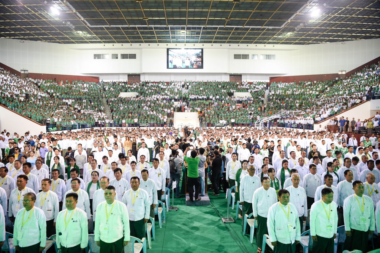ပြည်ခိုင်ဖြိုးပါတီ ရွေးကောက်ပွဲကြေညာစာတမ်းရှင်းလင်းခြင်းနှင့် အောင်နိုင်ရေးအလံအပ်နှင်းပွဲအခမ်းအနားသို့ အင်အား(၁၀၀၀၀)ကျော် တက်ရောက်