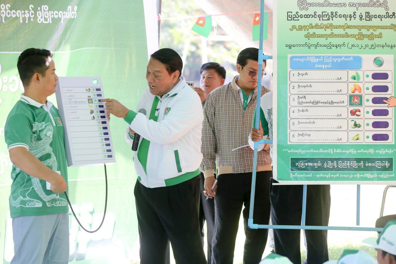 ဆက်လက်ပြီး ပါတီဥက္ကဋ္ဌ ဦးခင်ရီက ရွေးကောက်ပွဲတွင် မဲပေးရမည့်ပုံစံနှင့် နည်းစနစ်များအား မဲပေးစက်ပုံစံတူဖြင့် လက်တွေ့သရုပ်ပြရှင်းလင်းပြသပါသည်။ ၎င်းနောက် အမျိုးသားလွှတ်တော်ကိုယ်စားလှယ်လောင်း ဦးတင်ဦးလွင်မှ ကိုယ်စားလှယ်လောင်း၏ ကိုယ်ရေးအချက်အလက်များမိတ်ဆက်ခြင်း၊ ရွေးကောက်ပွဲတွင် မဲရုံသို့သွားရောက်၍ မိမိတို့နှစ်ဦးအား ဆန္ဒမဲပေးရေးကိစ္စရပ်များအား ရှင်းလင်းပြောကြားခဲ့ပါသည်။