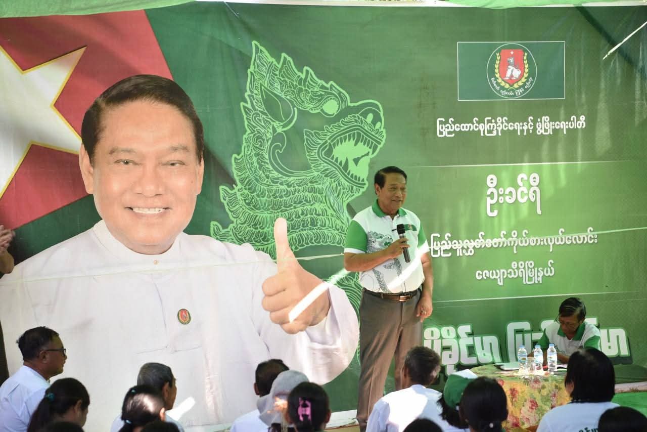 ပြည်ထောင်စုကြံ့ခိုင်ရေးနှင့်ဖွံဖြိုးရေးပါတီ ဥက္ကဋ္ဌ ဇေယျာသီရိမြို့နယ် ပြည်သူ့လွှတ်တော်ကိုယ်စားလှယ်လောင်း ဦးခင်ရီသည် ၁၄-၁၂-၂၀၂၅ ရက်နေ့တွင် ဇေယျာသီရိမြို့နယ် စည်ပင်သာယာကျေးရွာနှင့် သိုက်ချောင်းကျေးရွာတို့မှ မဲဆန္ဒရှင်ပြည်သူများနှင့် တွေ့ဆုံခဲ့ပြီး ပြည်သူ့လွှတ်တော်ကိုယ်စားလှယ်လောင်း ပါတီဥက္ကဋ္ဌ ဦးခင်ရီမှ ကိုယ်စားလှယ်လောင်းအချက်အလက်များနှင့် နှုတ်ခွန်းဆက်အမှာစကားပြောကြားကာ ရွေးကောက်ပွဲတစ်ခု၏ အရေးပါမှု၊ မဲပေးခြင်းဖြင့် ပြည်သူတစ်ဦး၏ တာဝန်ကျေပွန်မှု၊ မဲပေးရာတွင် သေချာစဉ်းစားဆုံးဖြတ်ပေးရန်လိုအပ်မှုနှင့် ပြည်ခိုင်ဖြိုးပါတီကို ရွေးချယ် မဲပေးသင့်သည့်အချက်များ၊ ပြည်ခိုင်ဖြိုးပါတီ၏ ရွေးကောက်ပွဲအာမခံချက်များအား ရှင်းလင်းပြောကြားကာ မဲဆွယ်စည်းရုံးခဲ့ပြီး မဲပေးစက်ပုံစံတူဖြင့် မဲပေးခြင်းနည်းစနစ်များအား သရုပ်ပြ ရှင်းလင်းပါသည်။