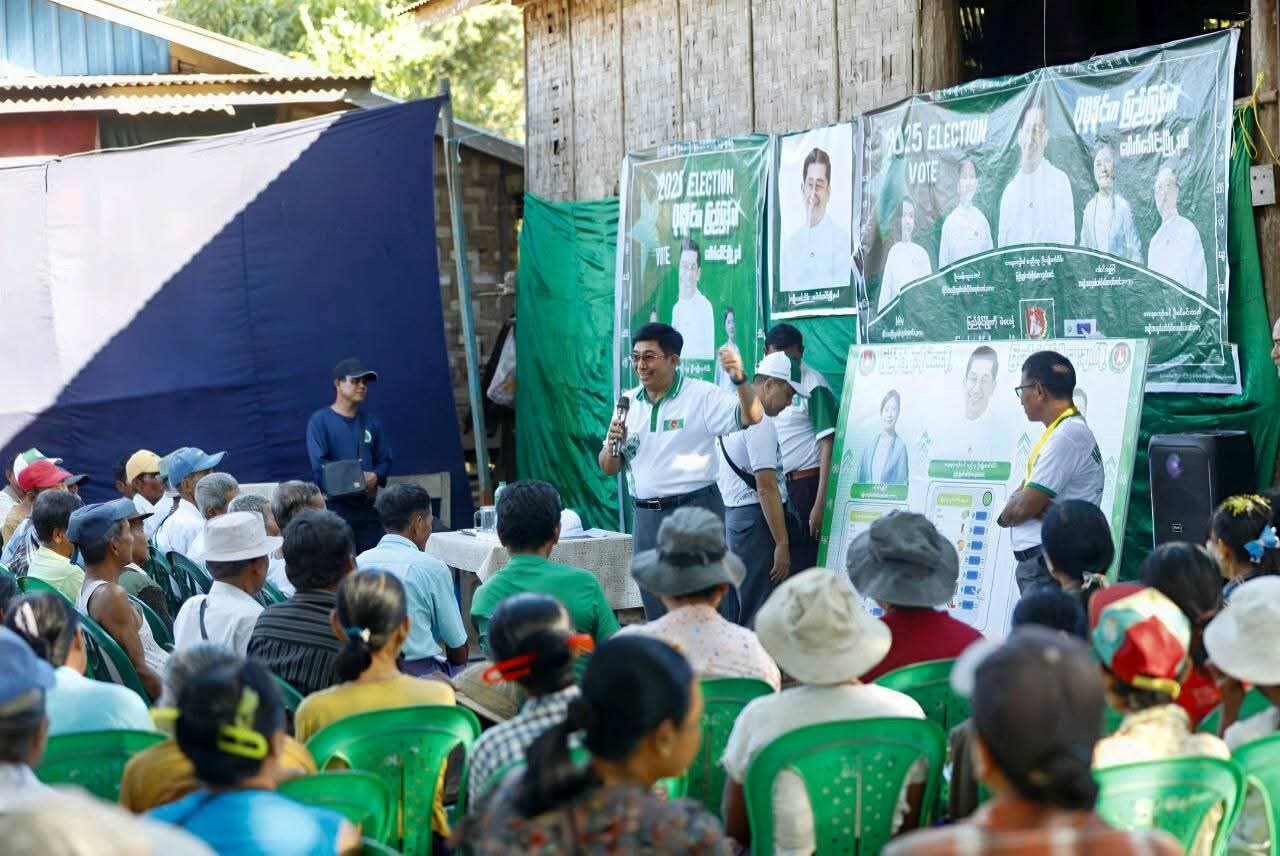 ပြည်ထောင်စုကြံ့ခိုင်ရေးနှင့်ဖွံ့ဖြိုးရေးပါတီဒုတိယဥက္ကဋ္ဌ ဦးမျိုးဇော်သိမ်း ပဲခူးတိုင်းဒေသကြီး( အနောက်ပိုင်း) ပေါက်ခေါင်းမြို့၊ရပ်သစ်ကျေးရွာရှိဒေသခံမဲဆန္ဒရှင်ပြည်သူများ၊ပါတီဝန်းရံသူများနှင့် တွေ့ဆုံ