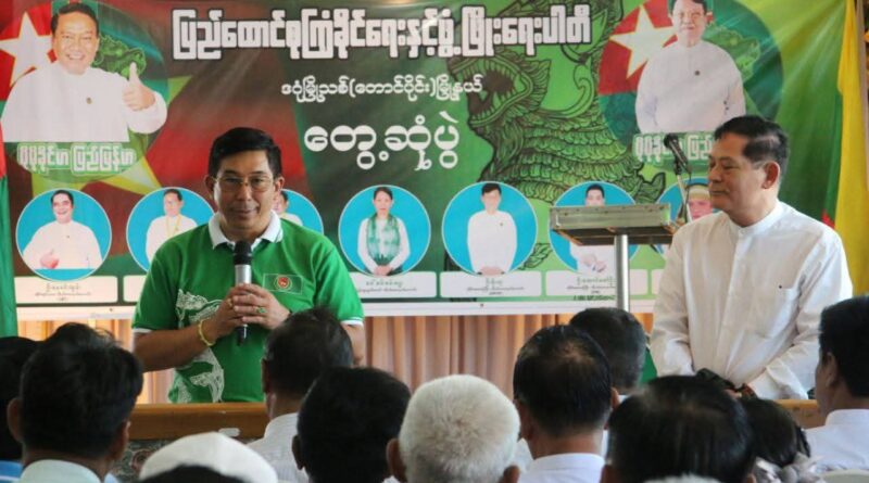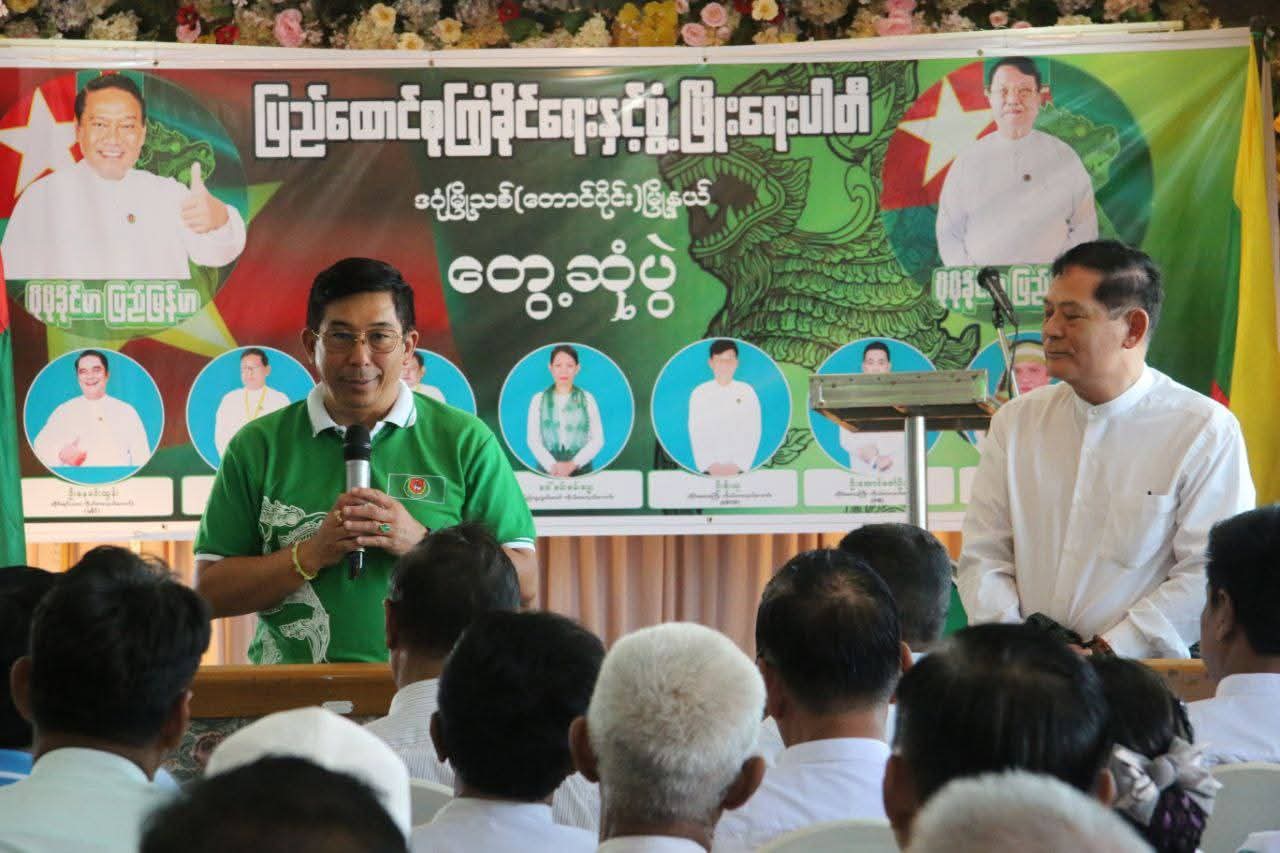 ပြည်ခိုင်ဖြိုးပါတီဒုတိယဥက္ကဋ္ဌဦးမျိုးဇော်သိမ်း ဒဂုံတောင်မြို့နယ်ပါတီကိုယ်စားလှယ်လောင်းများကို ရပ်မိရပ်ဖများထံအပ်နှံခြင်းအခမ်းအနား သို့တက်ရောက်