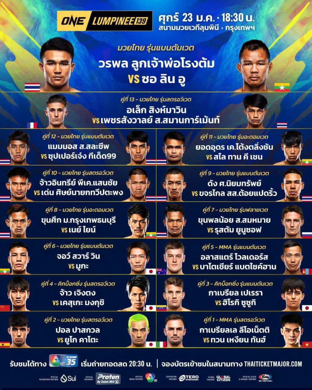 ONE Friday Fights-139 ပြဲစဥ္အတြင္း တြဲဆိုင္းေပါင္း (၁၄) ဆိုင္း ပါဝင္ထိုးသတ္သြားမည္ျဖစ္ေၾကာင္း သိရပါတယ္။