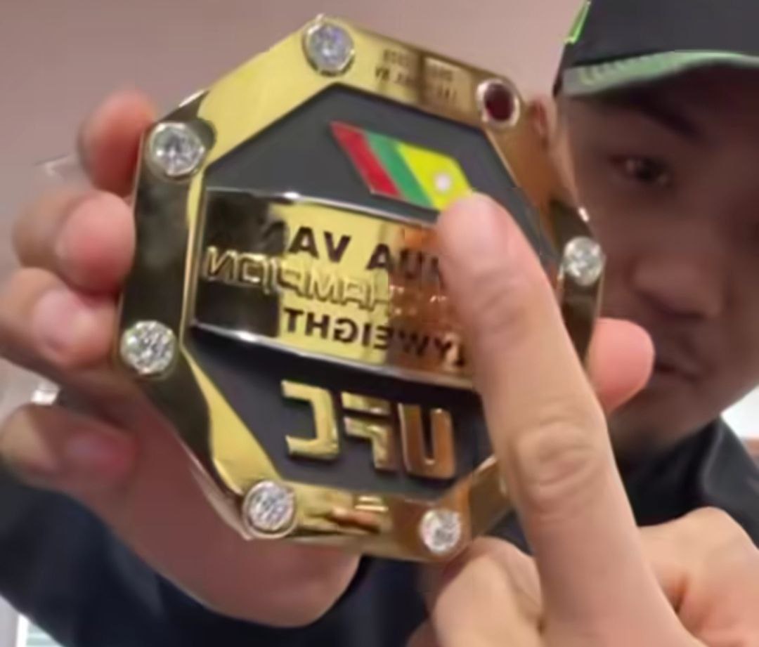 ထို႔ျပင္ ပတၱျမားတစ္လုံးကို ခ်န္ပီယံျဖစ္မႈ အထိမ္းအမွတ္အျဖစ္ ထည့္သြင္းေပးထားၿပီး ခါးပတ္ကာကြယ္ႏိုင္မႈအေပၚမူတည္၍ ပတၱျမားအေရအတြက္ တိုးလာမည္ျဖစ္ကာ UFC သမိုင္း၌ ျမန္မာ့အလံကို ပထမဆုံးအႀကိမ္ ခ်န္ပီယံတံဆိပ္ ေပၚတြင္ ျမန္မာအလံကို ႐ို-က္ႏွိပ္ေပးအပ္ျခင္းလည္းျဖစ္သည္။