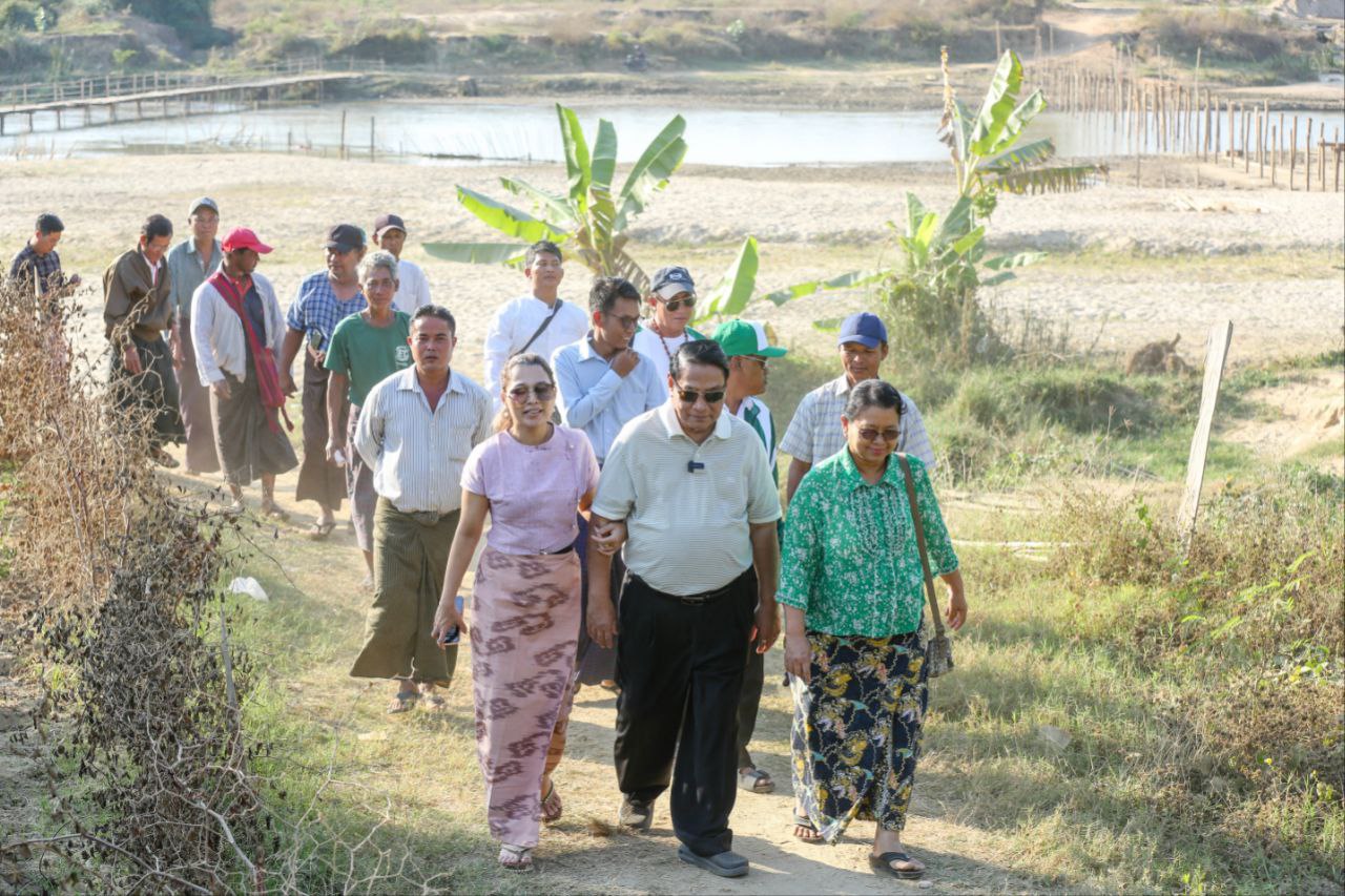 ပြည်ခိုင်ဖြိုးပါတီ ဥက္ကဋ္ဌ ဦးခင်ရီ ဇေယျာသီရိမြို့နယ် ရွှေဗဟိုရ်ကျေးရွာတံတား တည်ဆောက်ပြီးစီးမှုအား သွားရောက်ကြည့်ရှု
