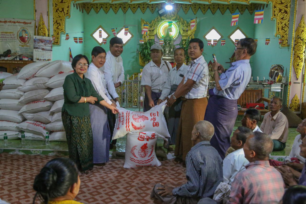 ပန်းတောကျေးရွာမိဘပြည်သူများကို ပြည်သူ့လွှတ်တော်ကိုယ်စားလှယ် ဦးသောင်းအေး မိသားစုမှ ဆန်အိတ်နှင့် ဘုရားဆင်းတုတော်များလှူဒါန်း